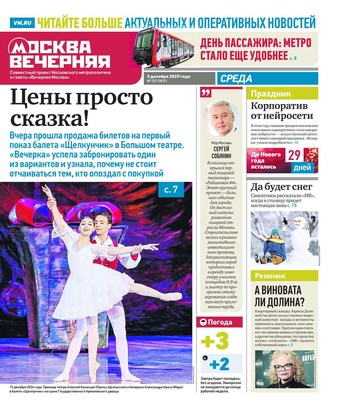 Вечером на страницах «Вечерки» появляются эксклюзивные интервью ньюсмейкеров культуры и шоу-бизнеса, репортажи журналистов по вечерней Москве, афиша нашего города. Один раз в неделю выходит специальный студенческий вечерний номер.