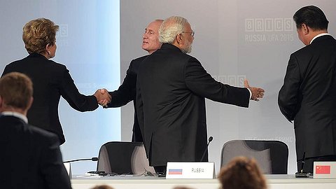 Накануне поздно вечером, после ужина с лидерами стран БРИКС, Владимир Путин встретился с одним из них — президентом Бразилии Дилмой Руссефф. Встреча была ознаменована одним-единственным замечанием господина Путина — и то не в адрес бразильянки. Когда участники переговоров рассаживались по местам, остался стоять только министр иностранных дел России Сергей Лавров. Он что-то досматривал в своих бумагах.